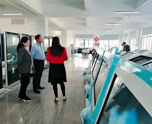 總經理陳總在給領導介紹公司給行業(yè)單位定制的一些互動觸摸查詢軟件