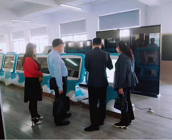 董事長張紅玲女士在給領導介紹全國幼兒園定制的觸控互動終端